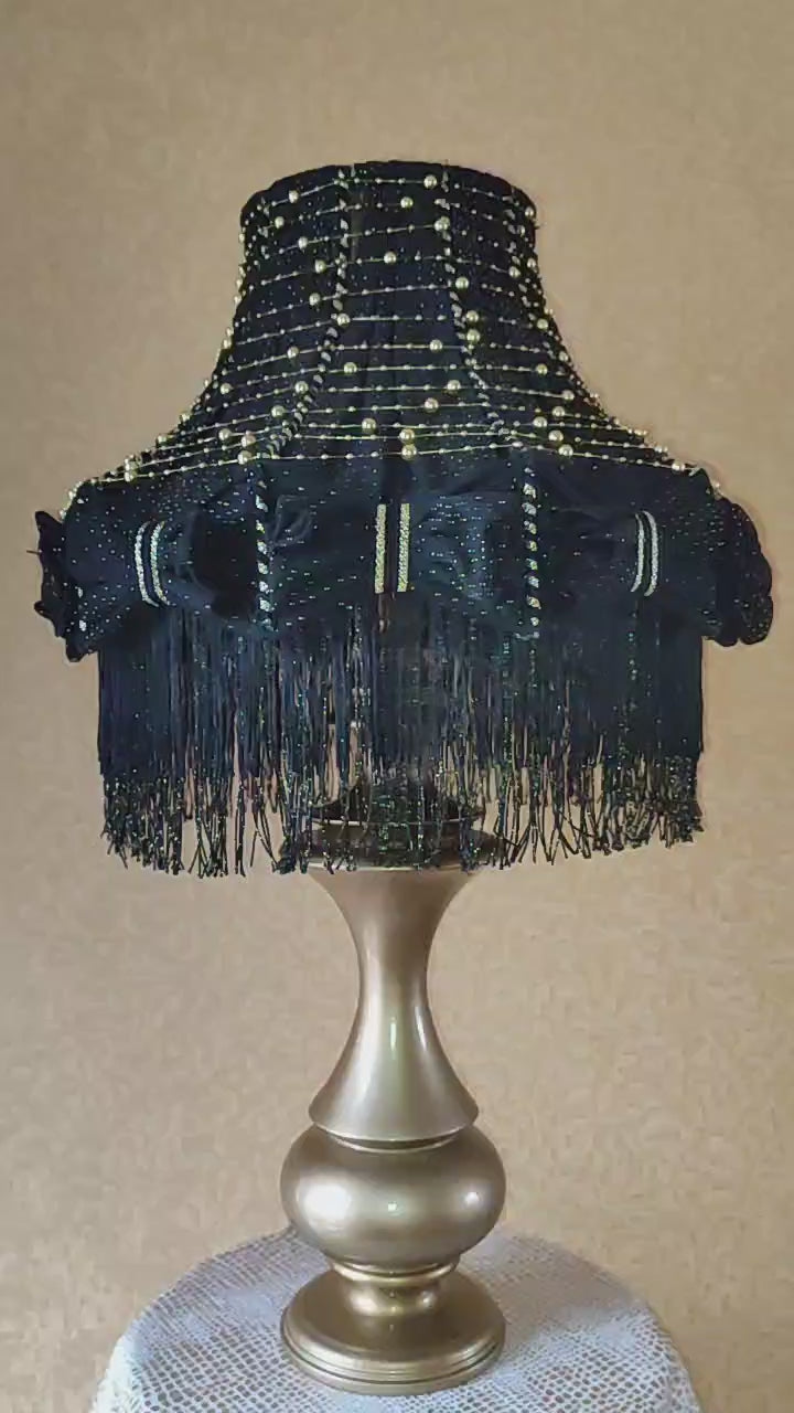Table lamp with fringe, black table lamp, unique lamp with beads. 1302